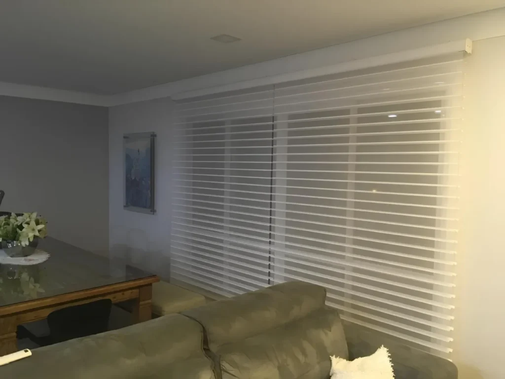 Confeccionada em dois tipos de tecidos, uma tela ultrafina e faixas horizontais com tecido mais robusto, as cortinas lumiére criam uma atmosfera leve e aconchegante para seu lar. Elas controlam a luminosidade do ambiente, liberando ou impedindo a entrada da luz, possuem acionamento manual ou motorizado e podem ter lâminas de 50mm ou 70mm. Além disso, aqui na Esther Decorações, nossa equipe técnica dispõe de ampla variedade de materiais para sua cortina, proporcionando liberdade na hora de desenvolver a peça para sua casa.